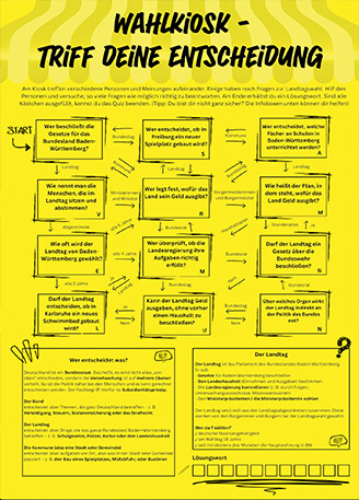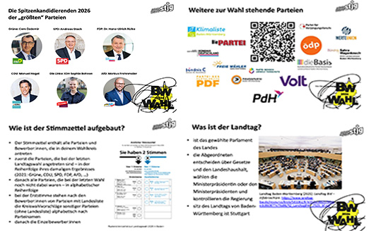 Nachfolgend findet ihr eine Sammlung an Materialien rund um das Thema Landtagswahlen. Alle Inhalte stehen als PDF zum Download bereit und sind für den Einsatz in Workshops, Schulstunden, Projekttagen oder offenen Settings konzipiert. Die Materialien sind vollständig ausgearbeitet und direkt einsetzbar. Gleichzeitig lassen sie sich flexibel an Zielgruppe, Zeitrahmen und Kontext anpassen.