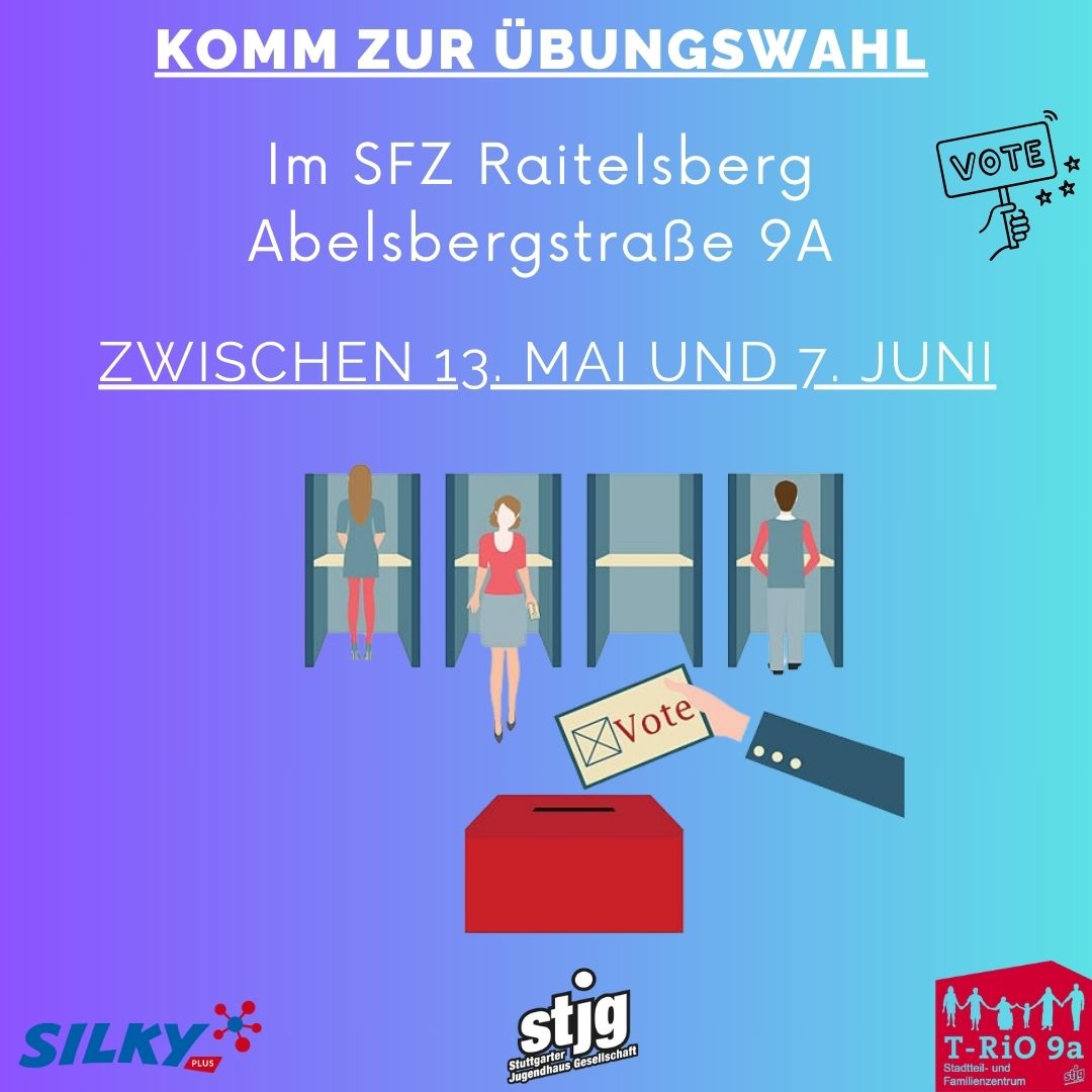 Wir stellen eine nachgebaute Wahlkabine auf und jeder Besucher hat die Möglichkeit eine Vorstellung davon zu gewinnen, was ihn am Wahltag erwartet. Unser Wunsch ist, dass jeder mögliche Wähler Sicherheit erfährt und eine Vorstellung über den Ablauf am Wahltag gewinnt. Zudem wird sich mit dem Thema der Wahl und welche Auswirkungen diese auf das Anwohnergebiet Raitelsberg oder auch auf den Stadtteil Ost gesehen hat auseinandergesetzt.